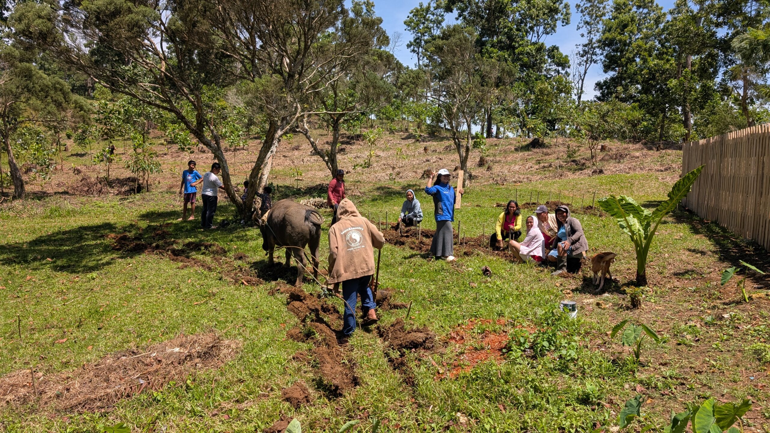 Beim Workshop hat auch der Wasserbüffel mitgeholfen und fleißig entlang der Konturen gepflügt.