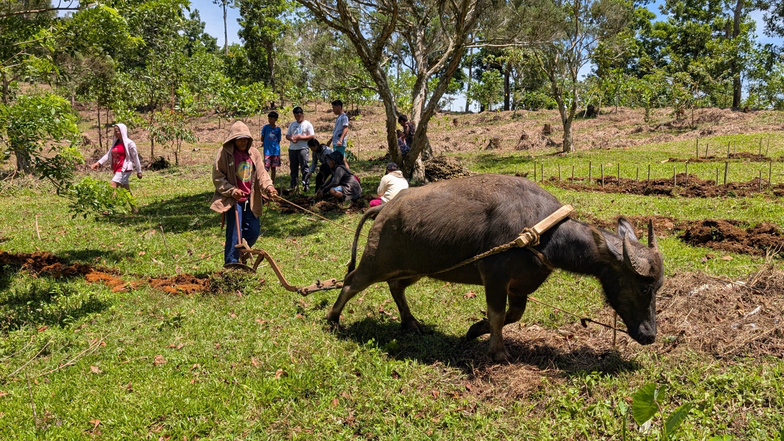 Um die Konturlinien zu finden, wird eine A-förmige Rahmenkonstruktion, ein sogenannter A-Frame verwendet, an dem eine Wasserwaage waagrecht befestigt ist. Die Punkte gleicher Höhe werden mit den Füßen des A-Frames gesucht und mit Holzstöcken markiert. Der Wasserbüffel pflügt anschließend entlang dieser markierten Konturlinie und lockert die Erde, in die dann die Hecken doppelreihig gepflanzt werden. Als Heckenarten verwendet man häufig Leguminosen, die Madre de Kakao, Ipil-Ipil, Flemingia oder Renzonii heißen. Sie können Stickstoff, den wichtigste Pflanzennährstoff, bilden und verbessern so von selbst den Boden.