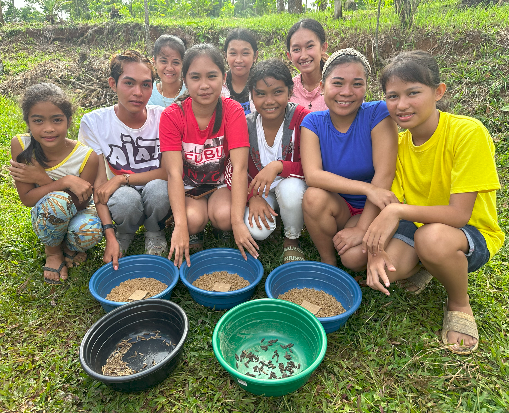Um den Bauernfamilien die Larvenproduktion näher zu bringen und die Diskussion darüber in den Familien zu eröffnen, hat maninoy mit den Patenkindern in den Bergen ein Projekt durchgeführt. Wir haben den Patenkindern gezeigt, wie man die Larven füttert, worauf es dabei ankommt und ihnen anschließend Eier bzw. Babylarven gegeben. Nun hatten sie 14 Tage Zeit, die Larven mit eigenen Küchenabfällen und Tiermist zu füttern.