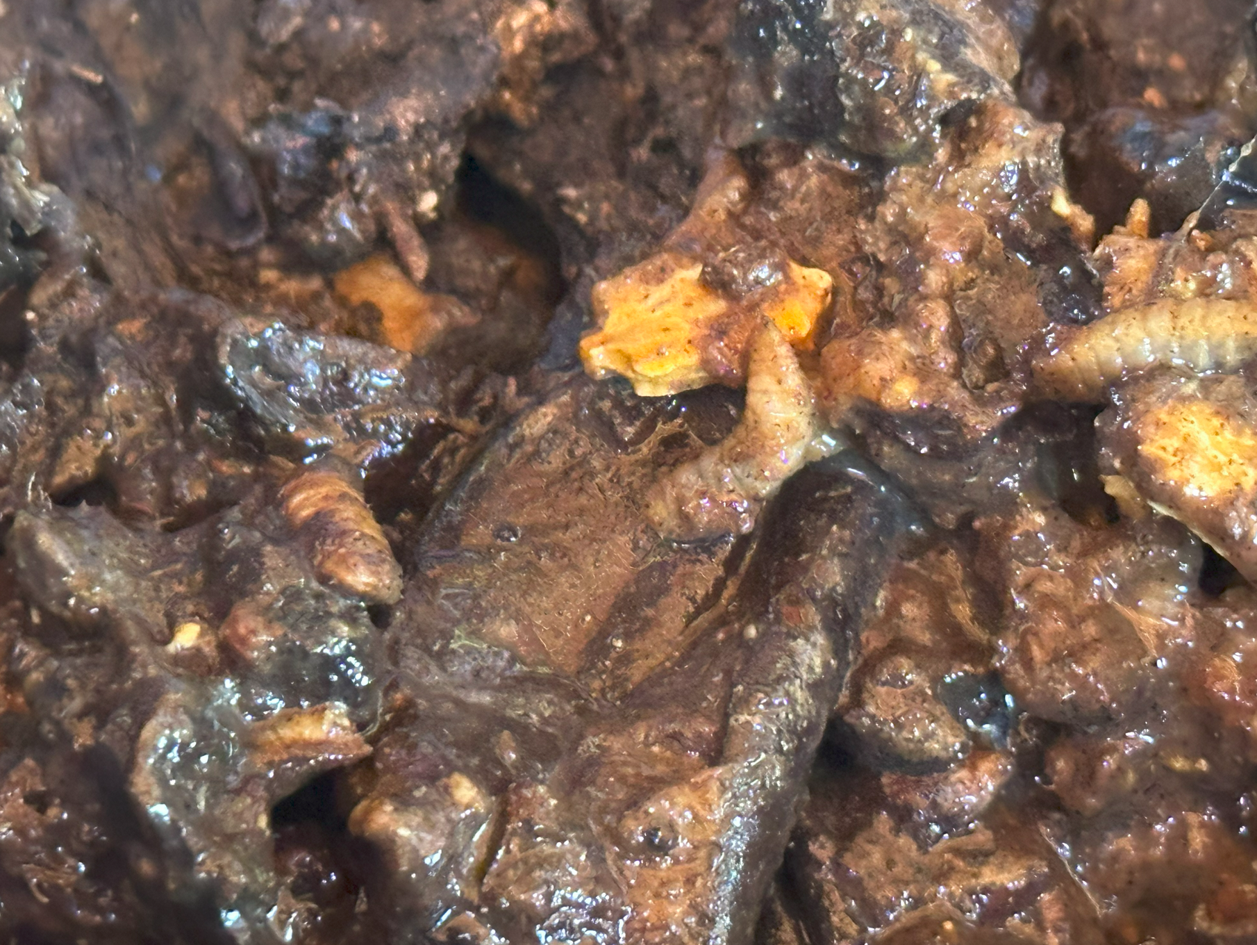 Die Larven der Schwarzen Soldatenfliege stellen ein sehr proteinreiches Tierfutter dar.